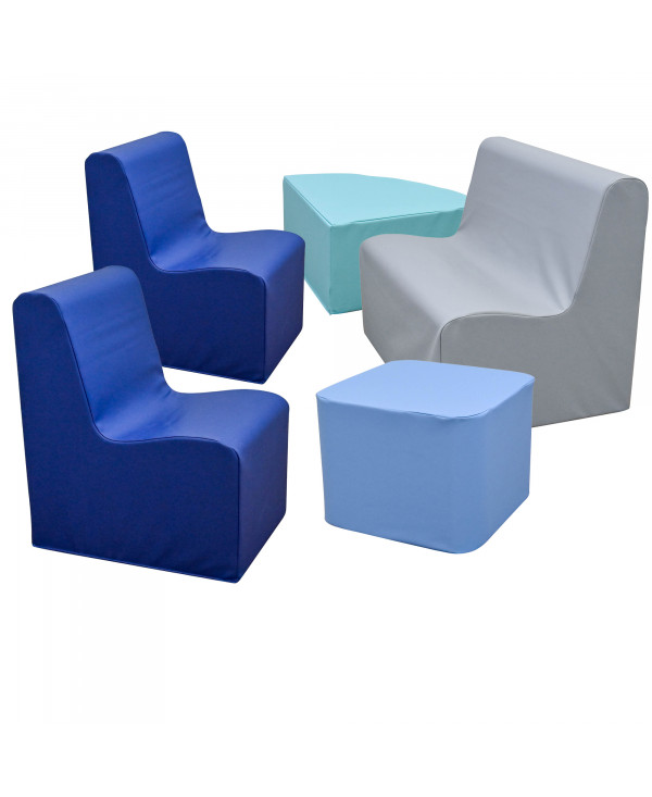 The Large Contour Seating Set of 5 is a stylish and functional kids seating solution for classrooms, playrooms, and flexible learning spaces. This modular set includes a FlexCube, Large Contour Sofa, Large Corner Ottoman, and two Large Contour Chairs, offering multiple seating configurations.